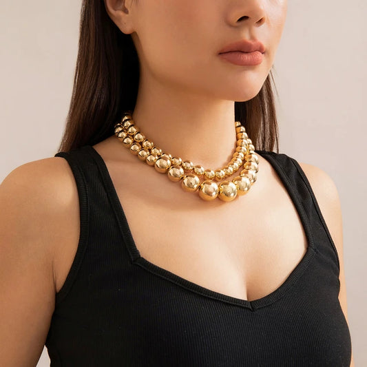 Luxury Bold and Gold Beads 2 Layer Statement Necklace
