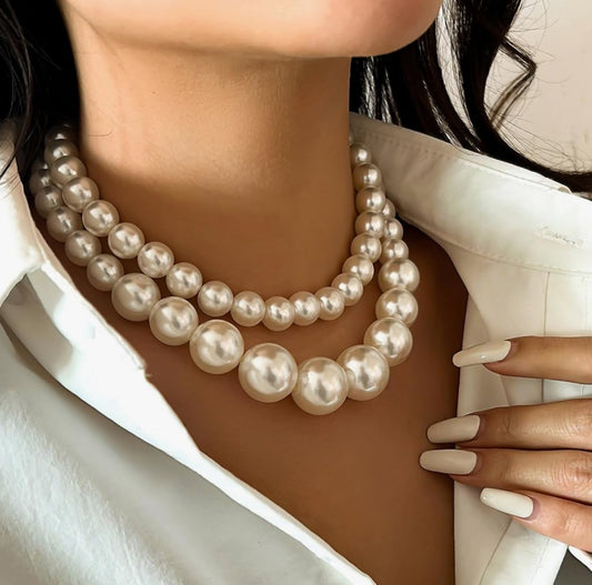 Luxury Bold Pearl Beads Statement Double Layered Necklace
