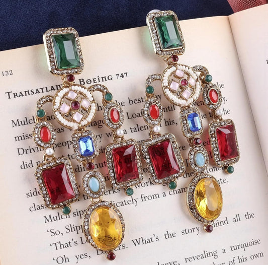 Partywear Celebrity Designer Dangler Earrings for Women - Western Fashion Multicolor Drop Earrings