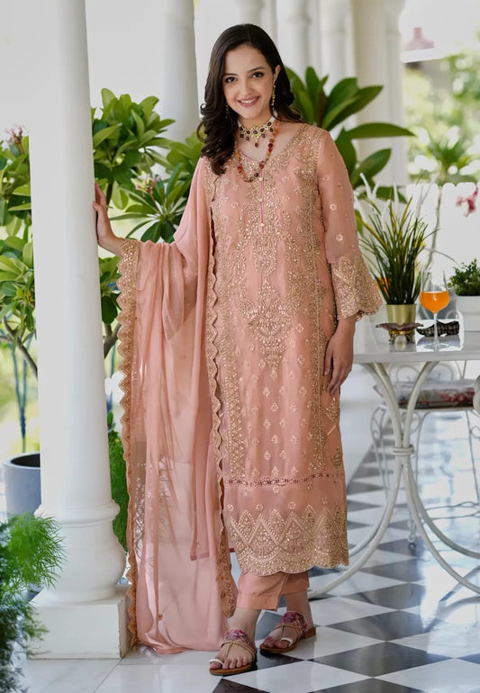 Peach Embroidered Pakistani Salwar Suit