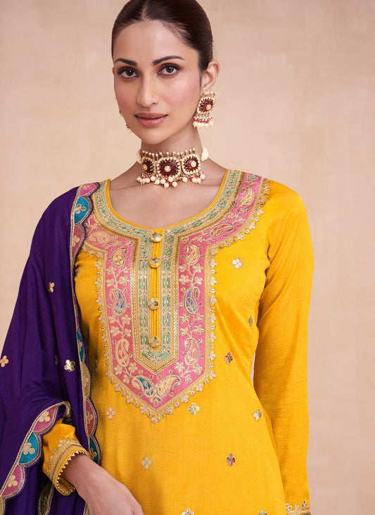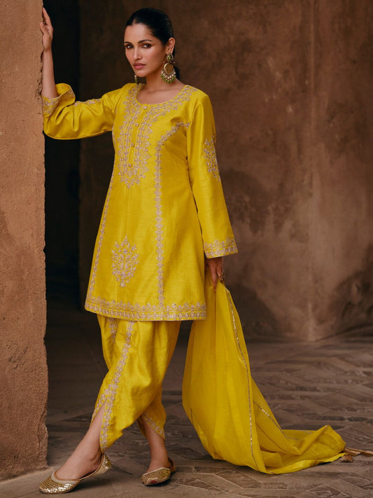 Yellow Silk Blend Zari Embroidered Dhoti Salwar Suit