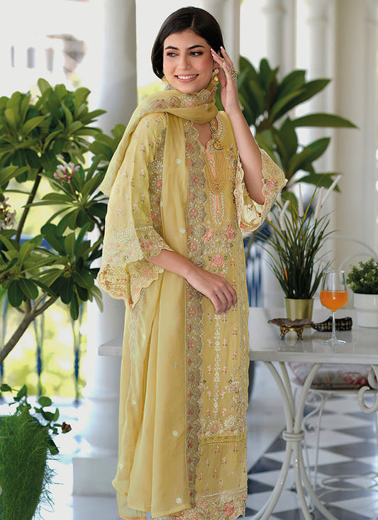 Yellow organza zari embroidered Pakistani Salwar Suit
