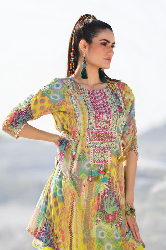 Yellow Pure Crepe Ethnic Printed Sharara Set