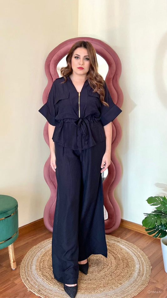 Black Velvet Co-ord Set With Embroidery And Mirror Work