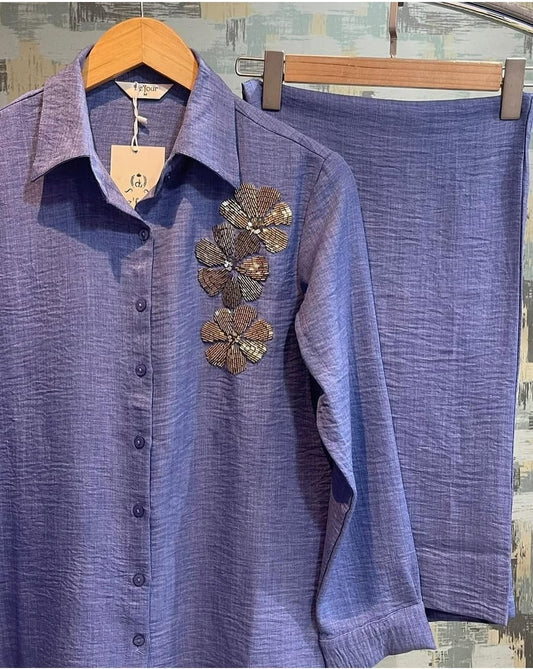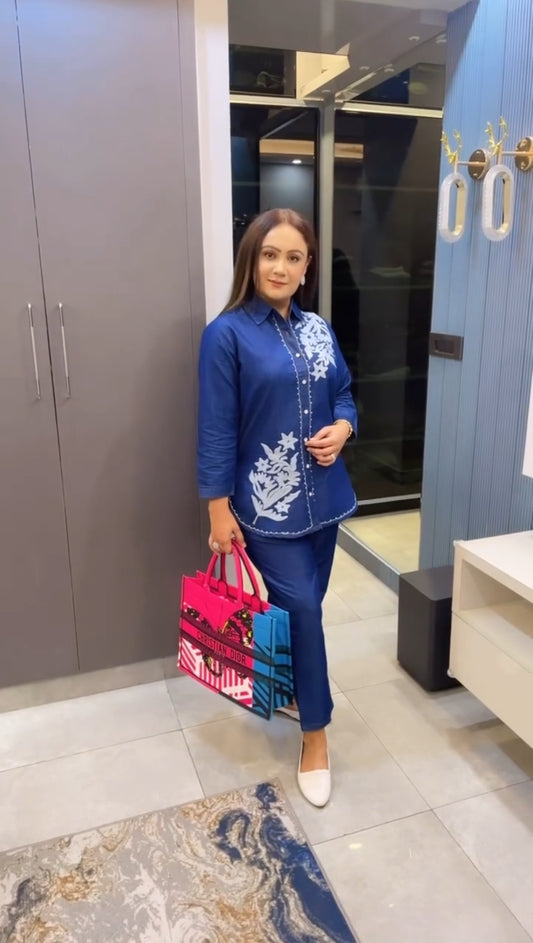 Soft Denim Coord Set With Kashmiri Embroidery