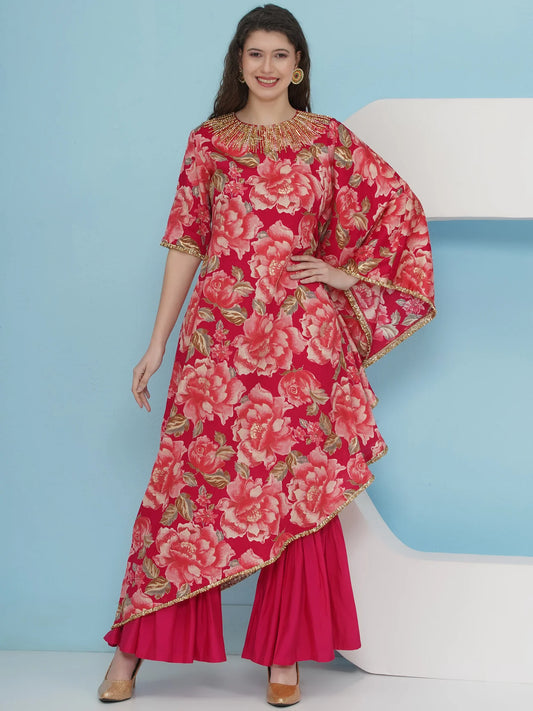 Designer Pink Printed Hand embellished One side kaftaan with sharara Set