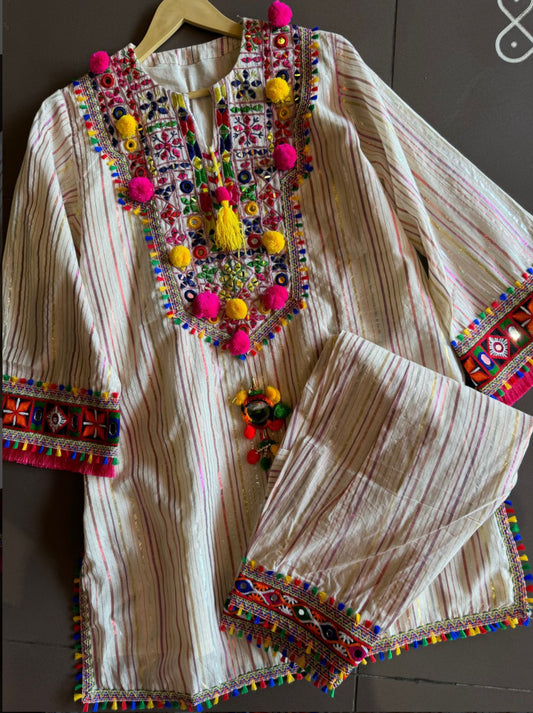 Multicolor with Heavy Tassels Kaftan Dhoti Set