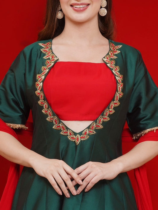 Partywear Green Silk blended hand embellished anarkali suit with dupatta