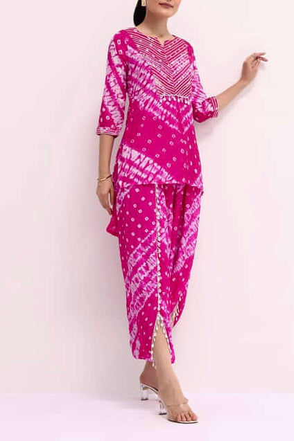 Sold outGota Bandhej Pink Coord set