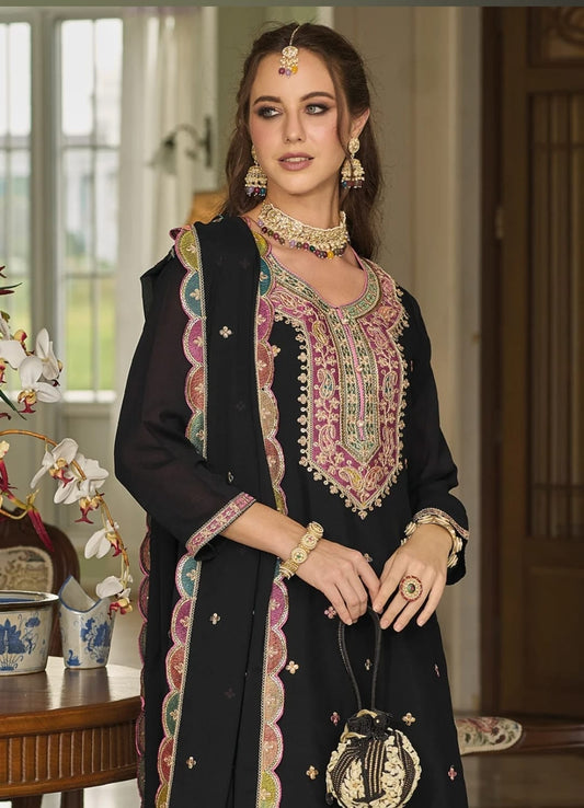 Black Heavy Zari Embroidered Kurta & Sharara Suit