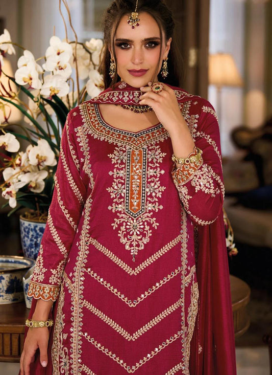 Maroon Mirror Work & Zari Embroidered Sharara Suit