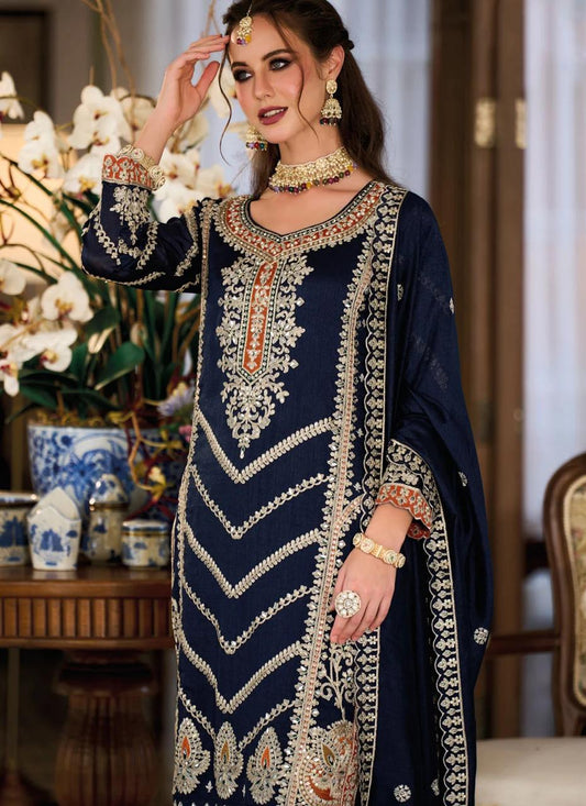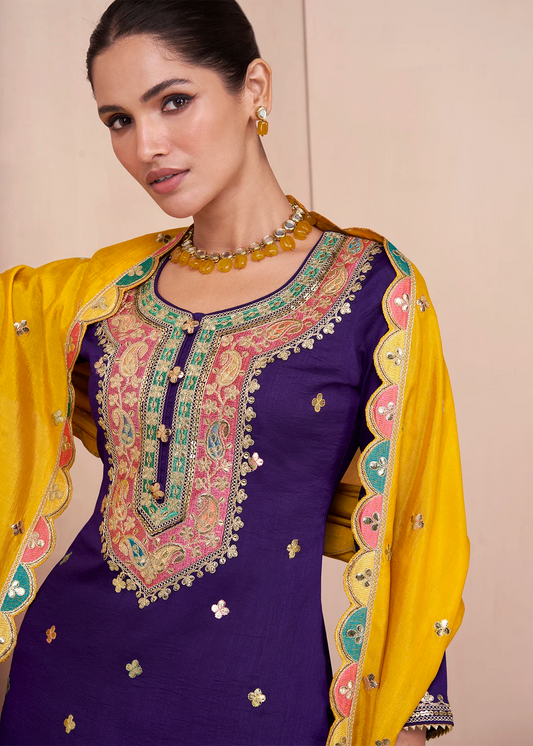 Navy Blue Zari & Mirrorwork Sharara Suit