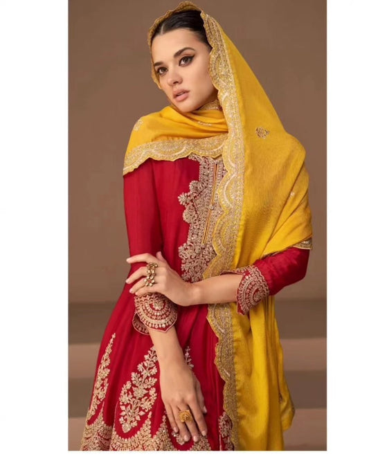 Partywear Designer Baby Pink Zari Embroidered Silk Blend Laacha