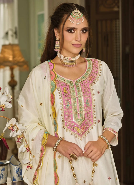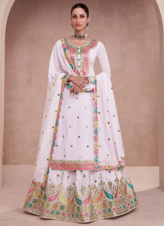 Off-white Zari Embroidered Kurta & Sharara Suit