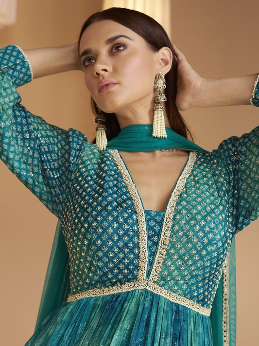 Multicolour Faux Georgette Sequins & Embroidery Alia Cut Gown