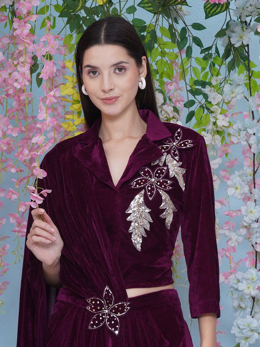 Designer Partywear Velvet Dhoti Skirt With Attached Drape