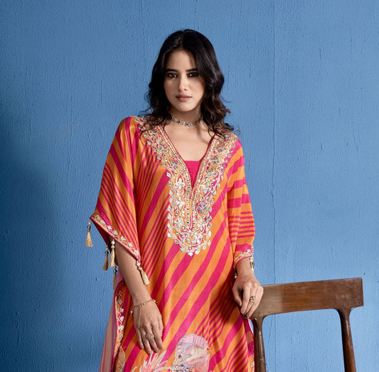 Orange And Pink Crepe Kaftan SetRegular price Rs. 3,499.00Regular priceUnit price / per-