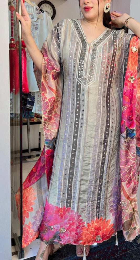 Orange And Pink Trending Ombre Heavy Gota Patti And Mirror Work Pure Crepe Kaftan SetRegular price Rs. 3,999.00Regular priceUnit price / per-