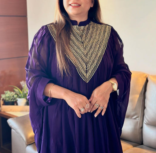 Purple Designer Sequins and Cutdana Georgette Kaftan Style Embellished Co-ord Set