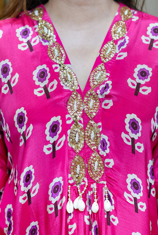 Designer Partywear Hot Pink Drape Skirt With Kaftan Style Top