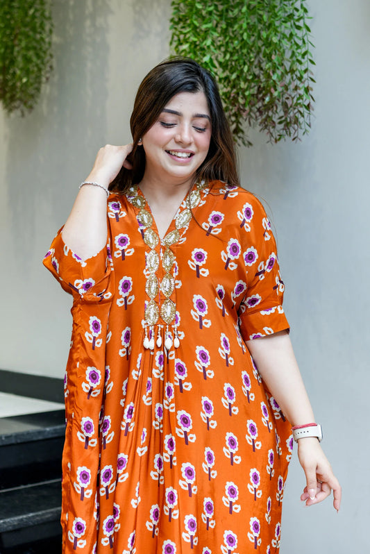 Orange Moroccan Kaftan Style Co-ord Set
