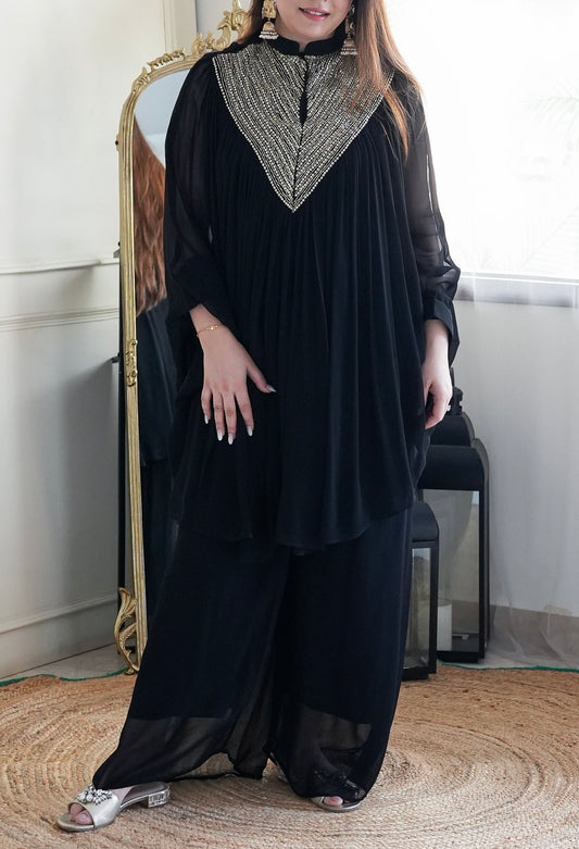 Partywear Black Designer Georgette Sequins and Cutdana Kaftan Style Embellished Co-ord Se