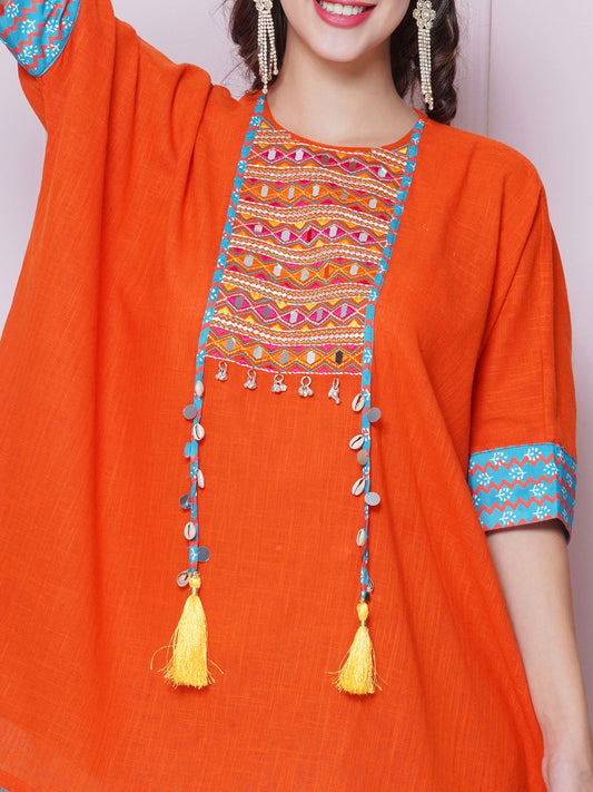 Orange Cotton Mirror Embroidered Kaftaan with Printed BellbottomRegular price Rs. 1,350.00Regular priceUnit price / perRs. 2,250.00Sale price Rs. 1,350.00Sale