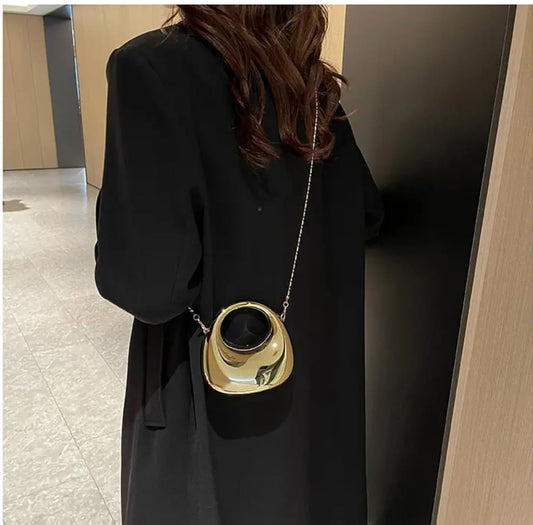 Designer Partywear Gold Zinc Alloy Metal Mini Moon Clutch Bag
