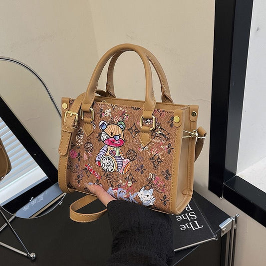 Imported Designer Crossbody Handbag with Graffiti Accent