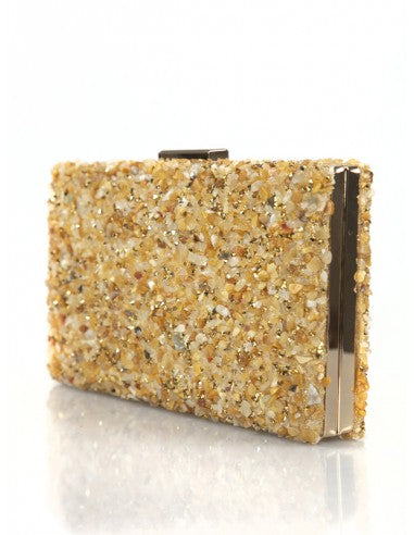 Golden Beige Gravel Stoned Metallic Evening Bags