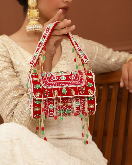 Partywear Luxe Multicolored Beaded Flap Bag