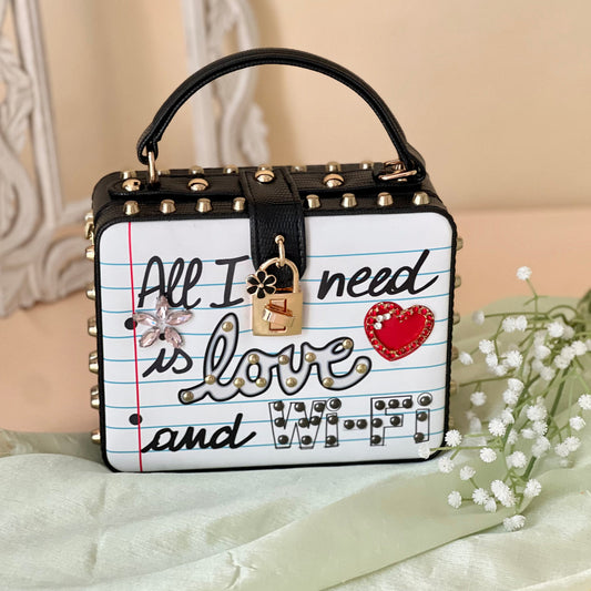 Partywear Love Sling Bag - Acrylic Printed With Embellishments