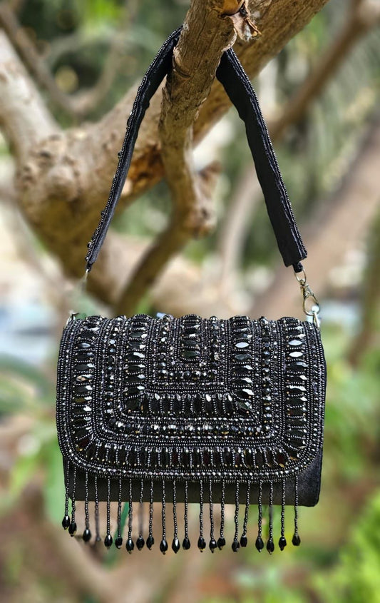 Sold outBlack Rhinestone Beaded Flap Clutch