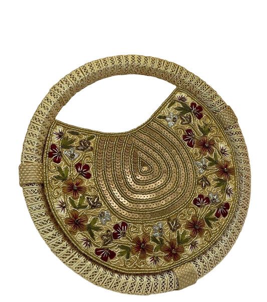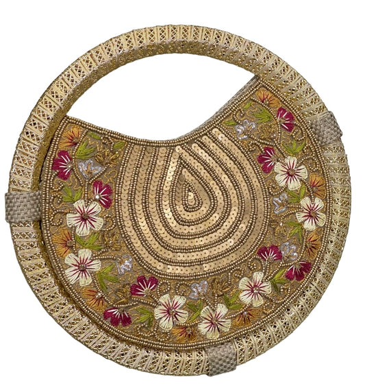Women's Dull Gold embroidered whirl round partywear clutch bag