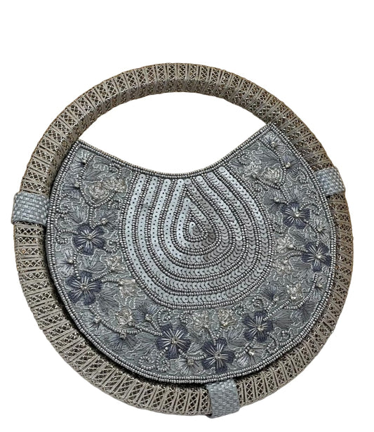 Women's Silver embroidered whirl round partywear clutch bag