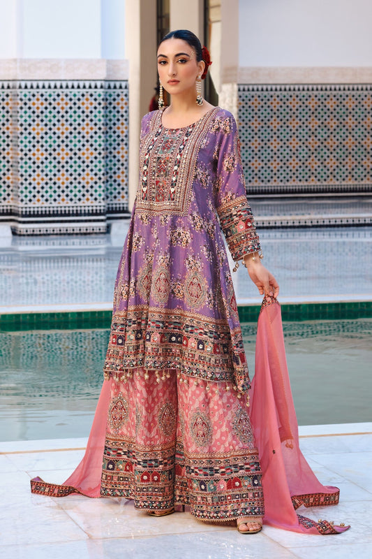 Partywear Designer Baby Pink Zari Embroidered Silk Blend Laacha