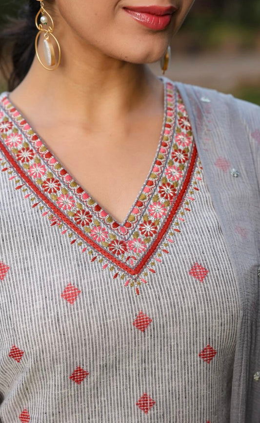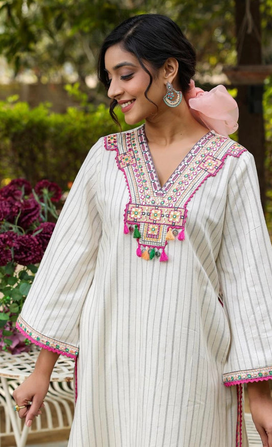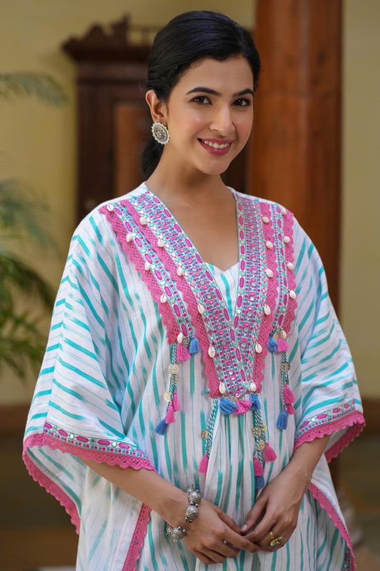 Fine Linen Cotton Embroidered Kaftan Style Coord Set