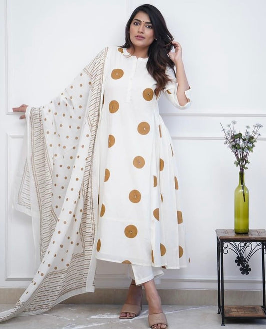 Pure Soft Mul Cotton Polka Dot A-Line Kurta And Pant Set