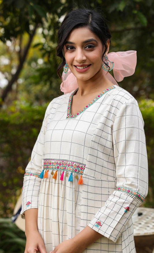 Women’s Cream Colour Pure Cotton Embroidered Designer Kurta Pant Set