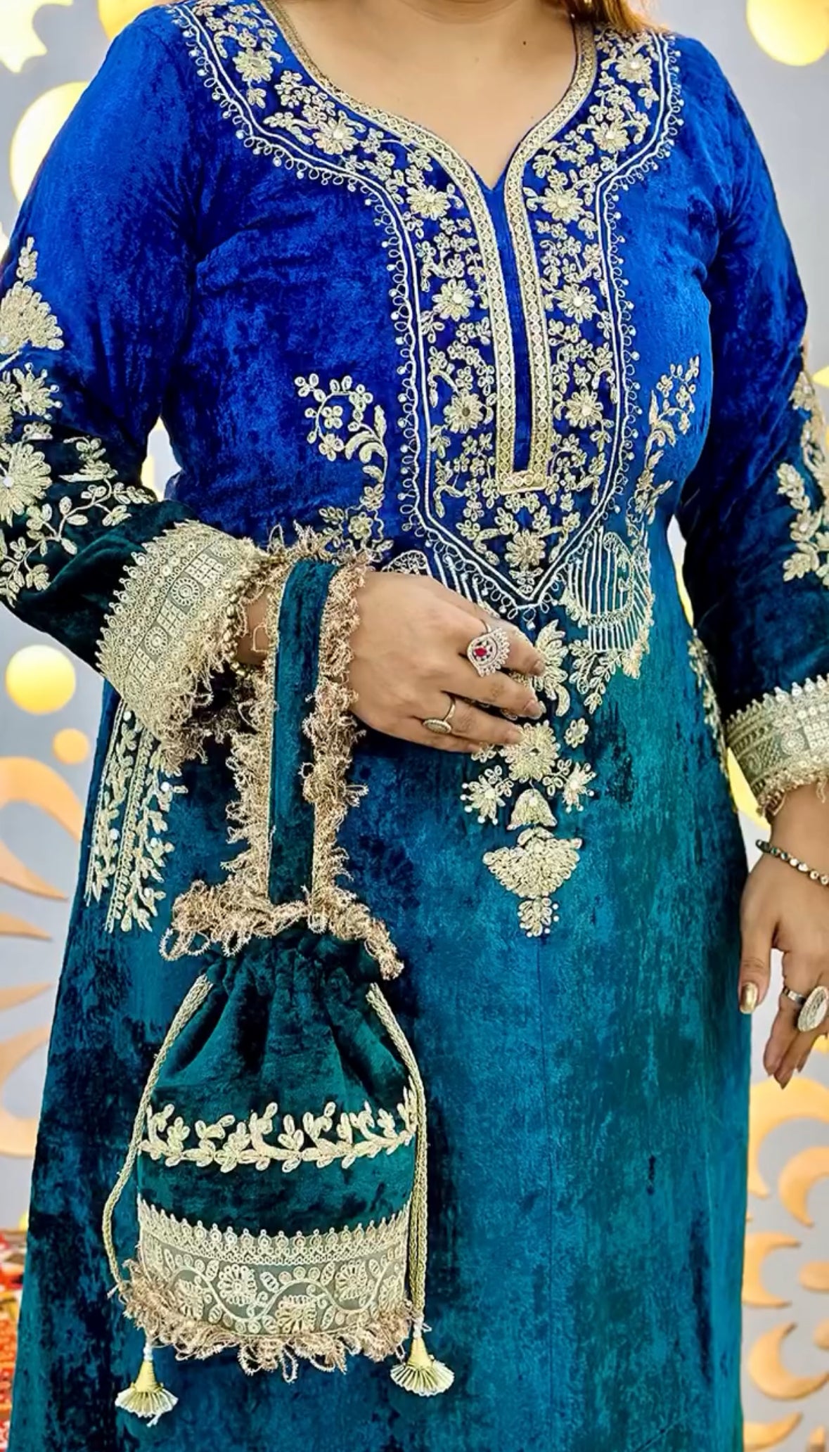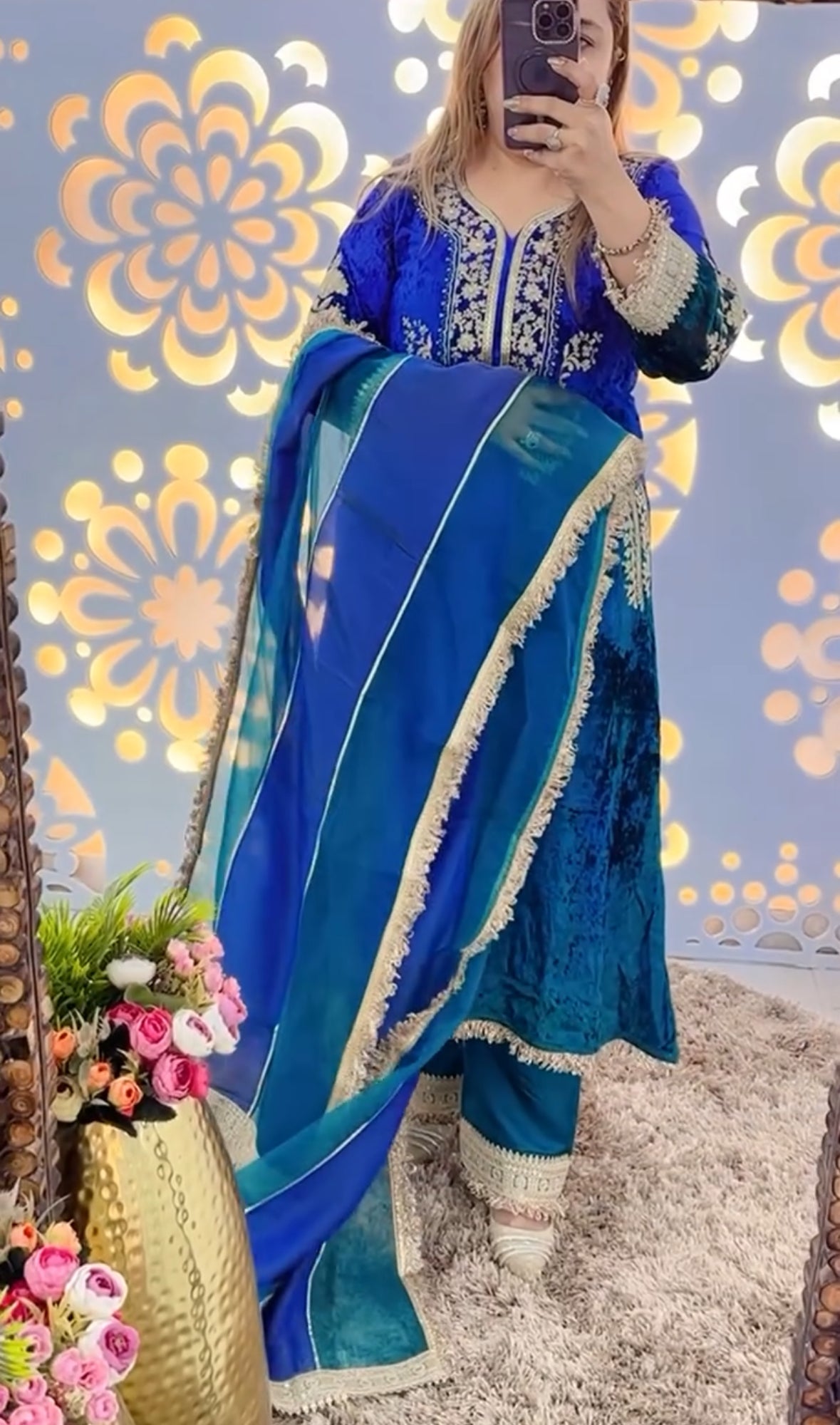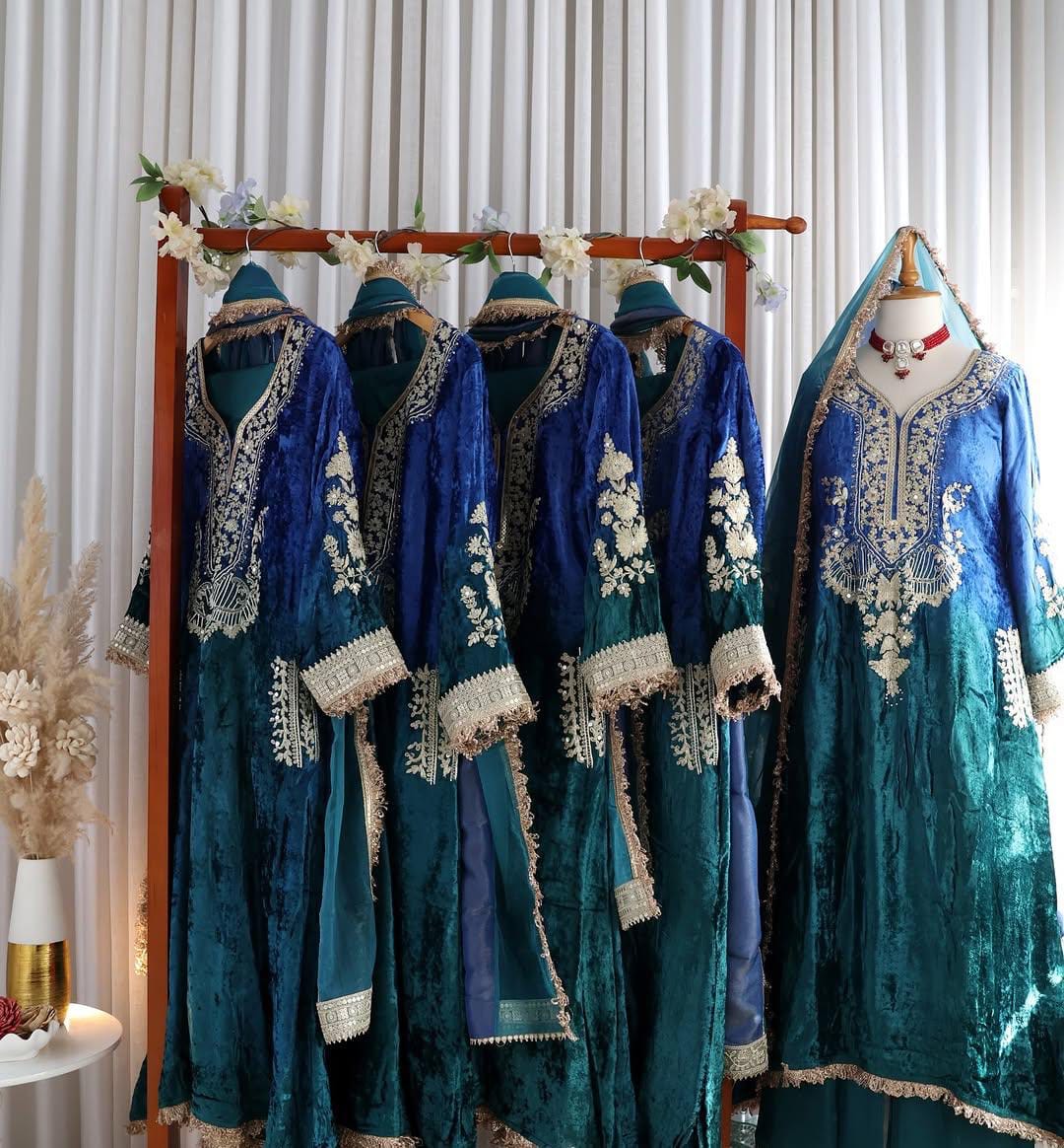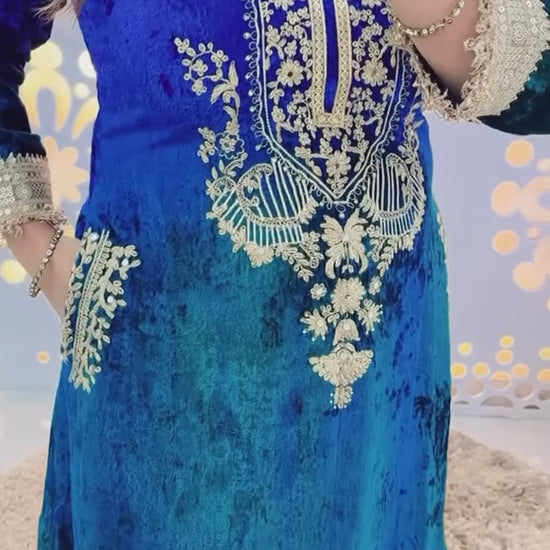 Designer Partywear Premium Dual Shade Velvet Kurta and Pant Set with Dupatta