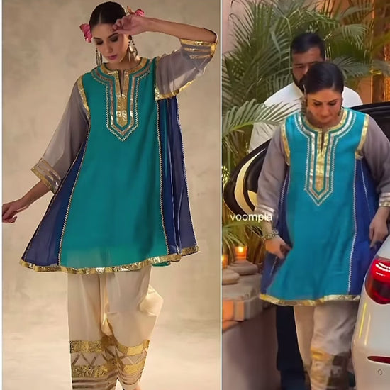 Kareena Kapoor Inspired Pure Chanderi Silk Designer Partywear Silk Kurta With Salwar With Gota Work