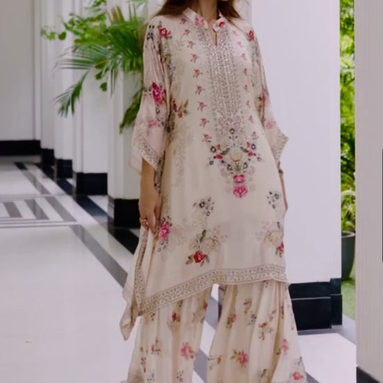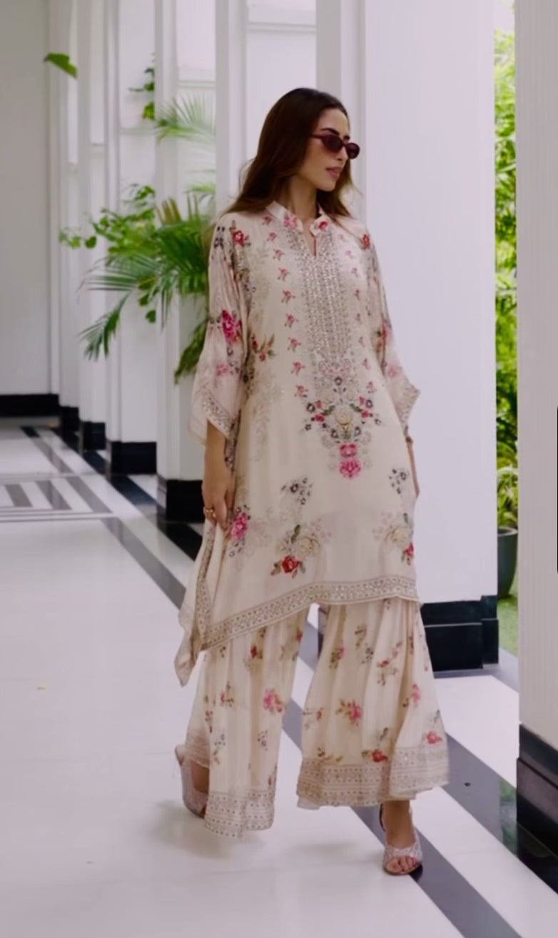 Partywear Designer Kaftan With Sharara in Chinon Silk